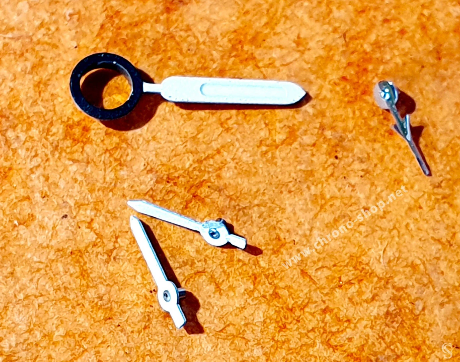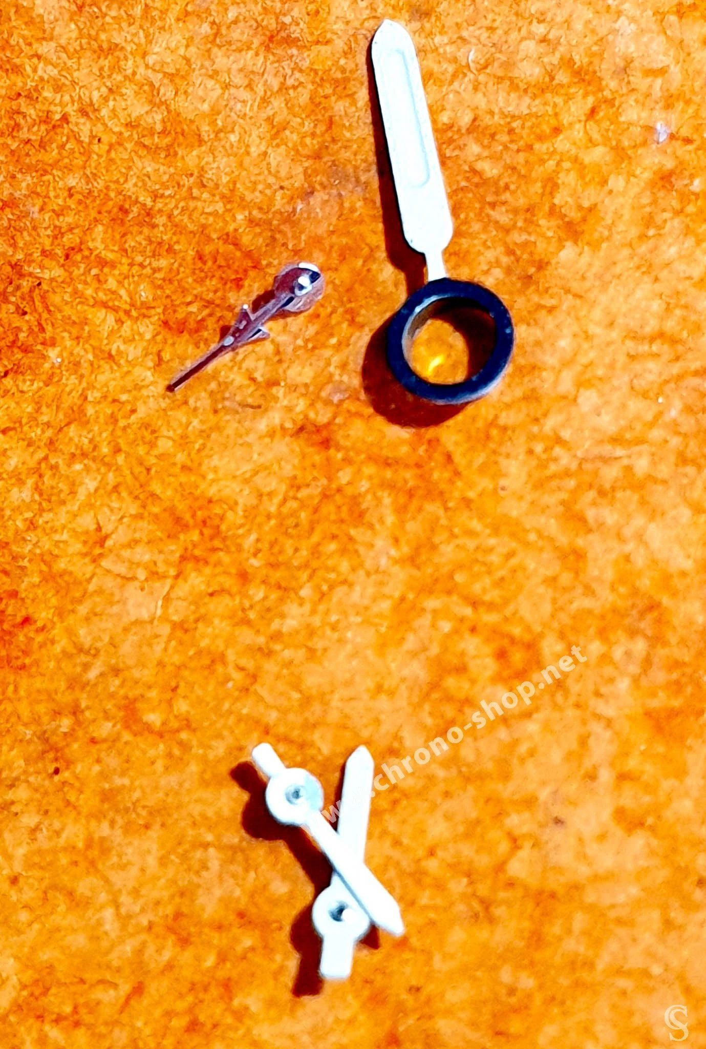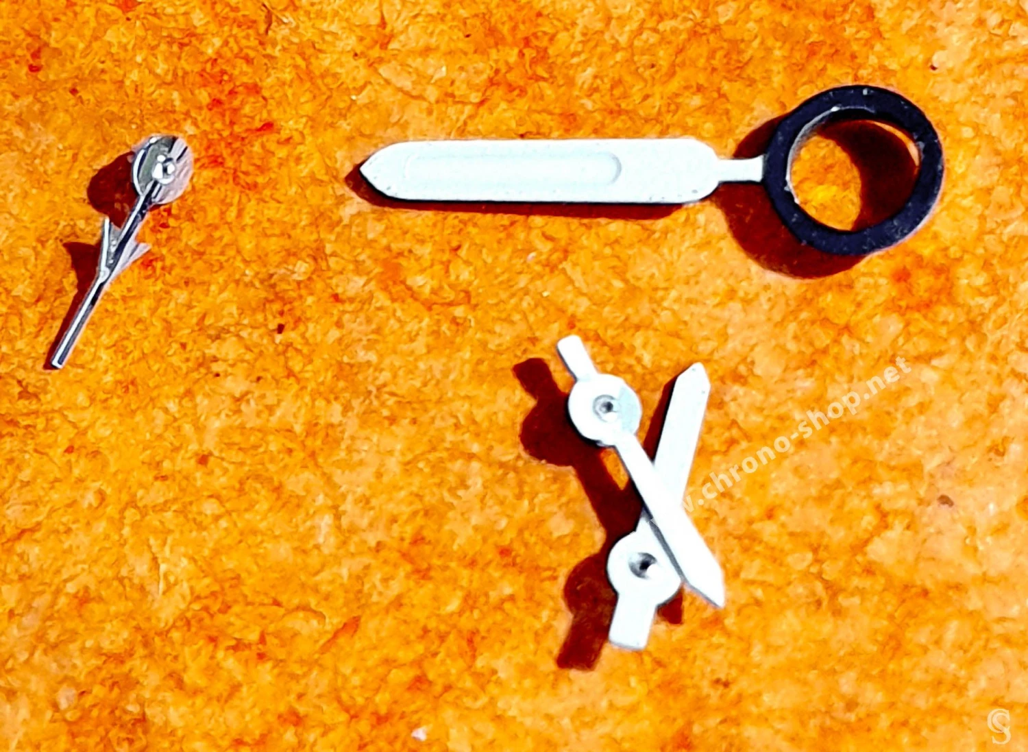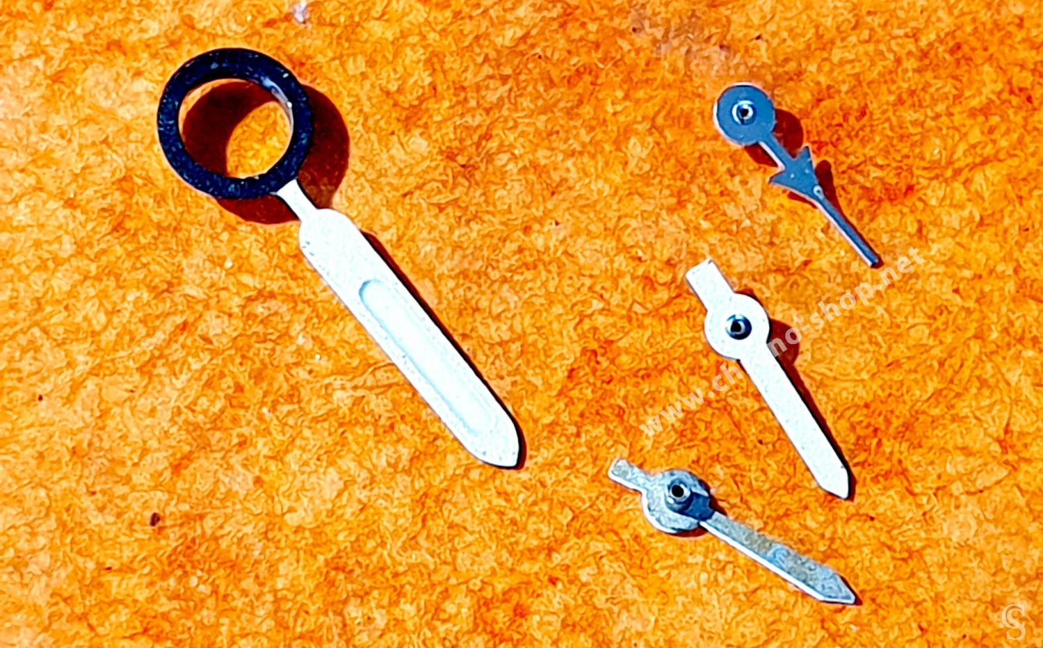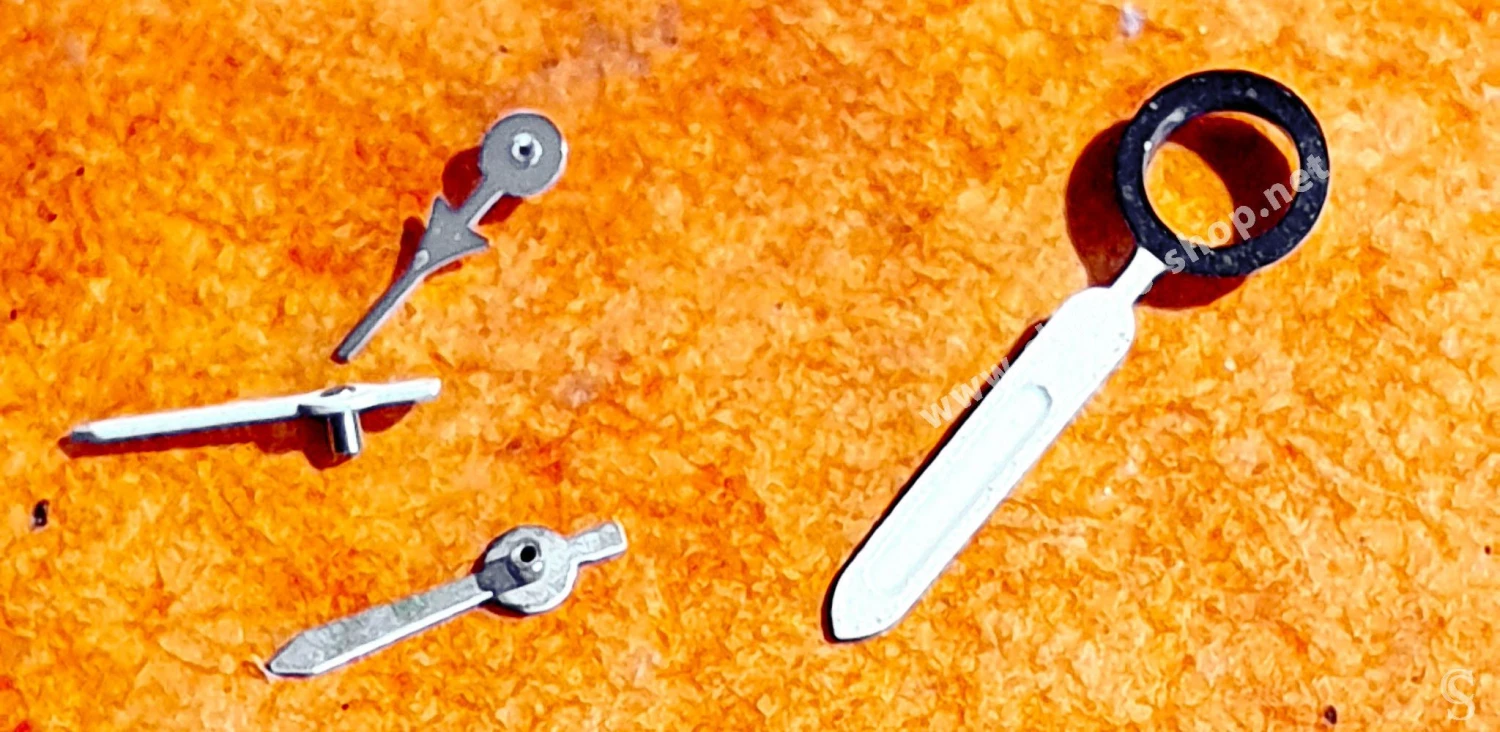 Les 3 x autres aiguilles sont les aiguilles des compteurs, 2 x sont blanches aspect mat et une est de finition acier brillante en forme d’avion de ligne.