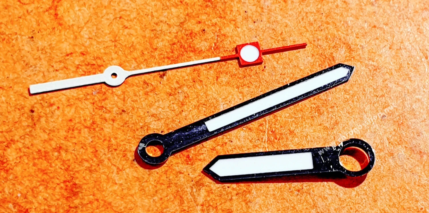 3 x aiguilles : minutes, secondes, heures.
